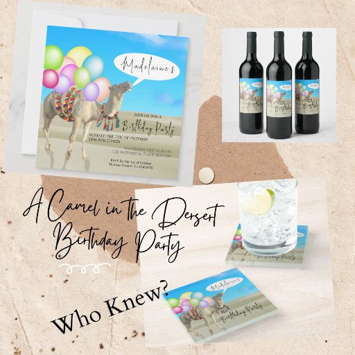 Diversão de Aniversário, Camel Colorido e Balões deserto Planejam uma festa de aniversário inesquecível com nosso único e colorido balão de camelo. Este design pessoal certamente adiciona alguma diversão extra à sua celebração. Pegue o seu hoje e faça seu aniversário especial. Altere facilmente as informações para suas próprias placas de papel personalizadas