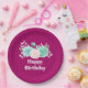 Prato De Papel Aniversário do Buquê Floral Verde e Rosa Pastel