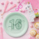 Prato De Papel Aniversário do Green Glitter Script Sweet 16