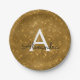 Prato De Papel Aniversário do Monograma do Sparkle e Shimmer Dour