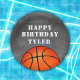 Banner de aniversário da Foto do Quadro de Quateres de Basquete. Banner de festa de aniversário de basquete do garoto bonito. A design tem basquete. Adicione o nome do seu filho e uma foto.