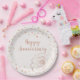 Prato De Papel Aniversário feliz rosa Dourado com Bolinhas