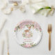 A placa descartável temático do partido da floresta feminino que caracteriza o rosa pastel & cora peônias da aguarela e ilustração de um cervo adorável do bebê