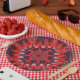 Prato De Papel Aniversário Fratural Vermelho, Azul e Rosa