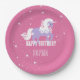 Prato De Papel Aniversário Púrpura do Unicórnio Rosa