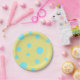 Prato De Papel Aqua e Bolinhas amarelas