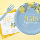 Prato De Papel Aquarela Limão Azul Main Squeeze Personalizado