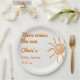 Como vocês podem ver este verão único e elegante aqui vem a placa de papel do chá solar tem um modelo bem projetado. Com a mão laranja desenhada pelo sol, a mão escreveu nome e data em laranja. E creme de fundo. O que você pode personalizar facilmente ao clicar no botão personalizar.