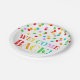 Bem-vindos pratos de papel no padrão do arco-íris.