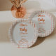 Como podem ver, este pão único e elegante na placa de papel do chá de fraldas neutro do gênero laranja no forno tem um modelo bem projetado. Com pão de laranja desenhado à mão, com o nome e data escritos à mão em laranja. E o quadro de borda laranja e quadrados de gingham. Tudo no fundo do creme. O que você pode personalizar facilmente clicando no botão personalizar.