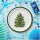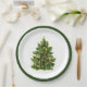Coloque uma mesa festiva com esta placa de papel da árvore de Natal. Esta placa de papel apresenta uma árvore de natais vintages no centro de um fundo branco cremoso. Há também uma borda verde de férias.