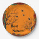 Estas coloridas placas de papel da festa Feliz Halloween são decoradas com árvores assustadoras, aranhas penduradas e folhagem de outono. Veja os guardanapos correspondentes para completar a aparência.