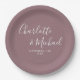 Prato De Papel Assinatura Elegante Script Mauve Casamento