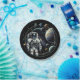 Placas de festa de aniversário com tema espacial. Arte surreal AI retratando um astronauta flutuando no espaço com planetas e luas. Astronauta no espaço do estilo cômico Hyper-realístico.