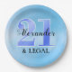 Finalmente 21 e legal! prepare-se para festejar com estilo com estes pratos de papel azuis 21 e legal elegantes, com fundo azul suave e personalizados com o seu nome.