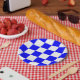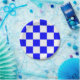 Placa de papel com um padrão de verificação azul e branco. Perfeito para qualquer reunião.