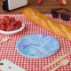 Prato De Papel Azul e Roxo Texturizado