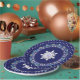 Floco de neve com o desenho de uma janela de vidro manchado de uma velha igreja europeia: uma janela rosa, com toques de uma grande variedade de cores, incluindo tons de azul, sobre um fundo azul marinho. Inlay de rochas azuis-claras (desenhada). Para um padrão de inverno antigo. Este motivo também está disponível em vermelho cardeal em minhas coleções de "rosa vermelho cardeal".