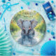 A sweet personalized first birthday paper plate with an elephant theme. A cute baby elephant looking at his reflection in the water.