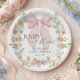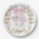Prato De Papel Baby in Bloom Pink Bow Baby Shower