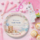 Celebrate the wonder of new beginnings with these baby shower plates featuring a charming baby in bloom theme. Adorned with pastel flowers, clouds, and a sweet teddy bear with balloons, these plates bring elegance and warmth to your celebration. The heartfelt phrase “A Little Dream Come True” makes them perfect for themed showers.