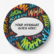 Um prato de papel inspirado na pop art de quadrinhos moderno, divertido e legal pode ser personalizado com sua própria mensagem. Perfeito para casamentos, chá de noiva, chá de bebê, batizado, festas de noivado, celebrações de aniversário de casamento e encontros de aniversário. Criado por Thisisnotme©