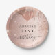 Para uma festa de aniversário elegante de 21 ruas (ou qualquer idade). Um fundo rosa dourado. Decorado com rosa dourado, pingos cor-de-rosa, pintura com aspecto pingado e balões. Personalize e adicione o nome e a idade 21 anos.