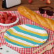 Prato De Papel Bandas irregulares - Turquesa e Amarelo