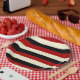 Prato De Papel Bandas irregulares - Vermelho e creme