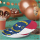 Essa design apresenta a bandeira estadual da Carolina do Norte, que fica na região sudeste dos Estados Unidos. A bandeira do Estado tem as datas da Declaração de Independência de Mecklenburg (20 de maio de 1775) e das Resolvas de Halifax (12 de abril de 1776), ambos importantes eventos do movimento pela independência americana. Raleigh é a capital da Carolina do Norte, enquanto Charlotte é a maior cidade do estado. Outras grandes cidades da Carolina do Norte incluem Greensboro, Durham, Winston-Salem, Fayetteville, Cary, Wilmington, High Point e Concord.