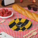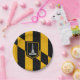 Placa de papel com bandeira da cidade de Baltimore, Maryland; bandeira negra e amarela com uma ilustração do Monumento de Batalha