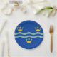 Placa de papel com design com uma bandeira do condado histórico de Cambridgeshire, na Inglaterra, Excelente-Bretanha; bandeira azul com três coroas ouros e duas ondas