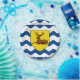 Placa de papel com design com uma bandeira do condado histórico de Hertfordshire, na Inglaterra, Excelente-Bretanha; bandeira com uma ilustração de um embate amarelo sobre fundo ondulado branco e azul
