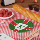 Placa de papel com design com uma bandeira do condado histórico de Nottinghamshire, na Inglaterra, Excelente-Bretanha; bandeira verde com cruz vermelha, com ilustração de Robin Hood no centro