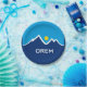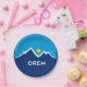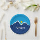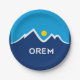 Placa de papel com um design com a bandeira de Orem, Utah. Uma bandeira azul, branca e amarela com picos de montanha e o sol no centro