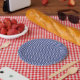 Na moda de gingham azul e padrão de tendência. Fresco e pré-pago.