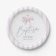 Prato De Papel Baptism Paper Plates for Girl, Modern Pink Bow
