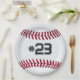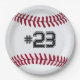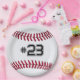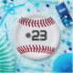 Fecho extremo de uma bola branca de basebol com pontos vermelhos e número. Número editável.