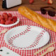 Placas de papel do basebol com guardanapo de harmonização.