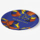 Estas placas de papel de festa do tipo basquete são totalmente personalizáveis e apresentam clusters de basquete nas bordas superior e inferior - cada uma das bolas de basquete tem dois painéis coloridos, um azul e um ouro - personalizam com seu texto personalizado - por katz_d_zynes