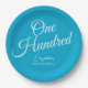 Prato De Papel Bastante moderno Script Aqua Blue 100º Aniversário