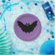 Paper Plate impresso com design de trabalho de arte do Bat Negro por TheFabricSeal no Zazzle é um morcego preto bonito e simples com cores de fundo do estilo silhueta de desenho das orelhas das Halloween Orange e das bruxas das bruxas do Halloween com o peekaboo a tocar verde khaki e os olhos laranja das abóbadas a olhar por amigos e presas e uma noite legal de aventura do Halloween, goblins, Tiras e fantasmas.