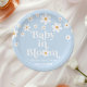 Prato De Papel Bebê em Bloom! Chá de fraldas azul-margarida retrô