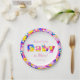 Placas de chá de fraldas personalizadas com um bonito motivo floral distante em cores vibrantes e modernas. Perfeito para uma celebração de "bebê em flor" ou um chá de fraldas de verão espantoso.