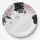 Lindas flores pretas e cor-de-rosa com algumas folhas de cinza em uma placa botânica de fundo de mármore