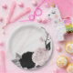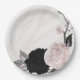Lindas flores pretas e cor-de-rosa com algumas folhas de cinza em uma placa botânica de fundo de mármore