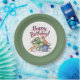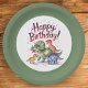 Este design de folha de papel de feliz aniversário de dinossauro verde giro mostra adoráveis dinossauros aquosos de várias cores. Esta design mostra também confete festivo, assim como a frase "feliz aniversário". Aproveite!