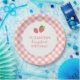 Celebrate your little one’s special day with these Berry First Birthday paper plates, featuring a soft pink gingham border, two sweet strawberries, and personalized text in the center. These strawberry birthday plates bring a cozy, farmhouse chic feel to your berry sweet first birthday or strawberry shortcake party.