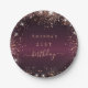 Prato De Papel Birthday Burgundy - rosa dourado script