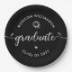 Prato De Papel Black Graduation White Modern Script Hearts Cap